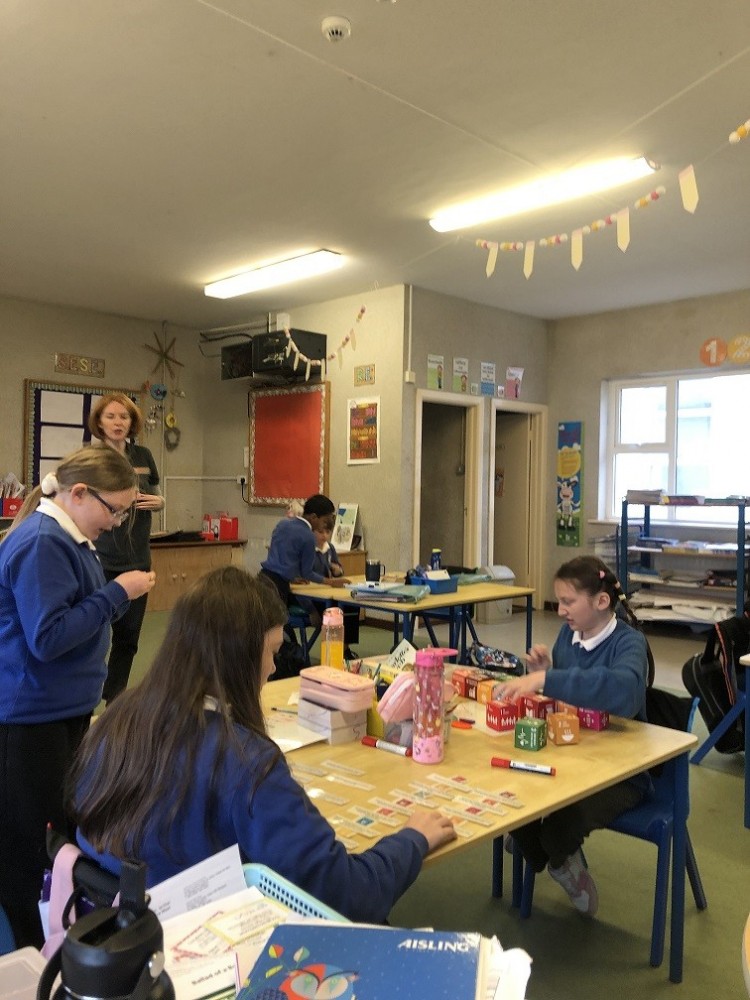 Bualadh bos for the children and their teachers Mrs Gallagher and Miss Coyle on creating three fantastic board games to take part in the competition.